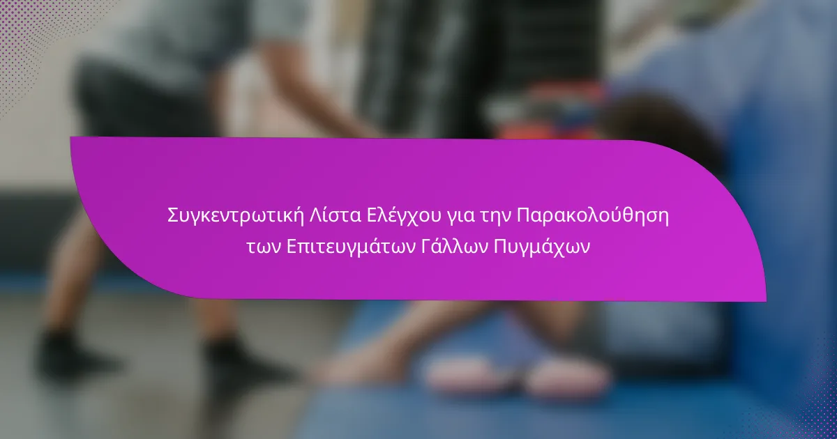 Η παρακολούθηση των επιτευγμάτων των Γάλλων πυγμάχων είναι ουσιώδης για την κατανόηση της επαγγελματικής τους πορείας και της επιρροής τους στο άθλημα. Κύρια στοιχεία όπως οι τίτλοι πρωταθλήματος, οι επιδόσεις στους αγώνες και οι αξιοσημείωτες εμφανίσεις παρέχουν πολύτιρες πληροφορίες για την επιτυχία τους. Χρησιμοποιώντας ψηφιακά εργαλεία και λεπτομερείς καταγραφές, σε συνεργασία με προπονητές, μπορεί κανείς να παρακολουθεί αποτελεσματικά την απόδοση και την ανάπτυξη ενός πυγμάχου με την πάροδο του χρόνου.
