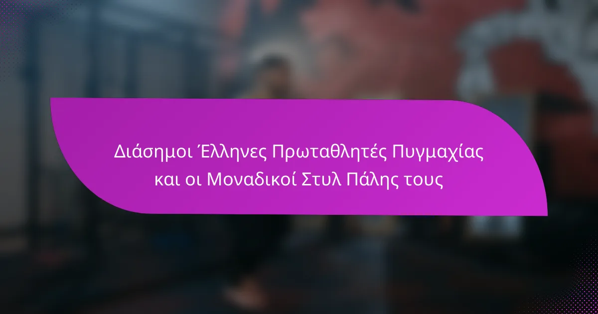 Οι πιο διάσημοι Έλληνες πρωταθλητές πυγμαχίας περιλαμβάνουν θρύλους όπως ο Michael Spinks, ο οποίος έχει κάνει σημαντική επίδραση στο άθλημα, και πιο σύγχρονους πυγμάχους όπως ο Kosta Tszyu. Αυτοί οι αθλητές γιορτάζονται όχι μόνο για τους τίτλους τους αλλά και για τα μοναδικά στυλ μάχης τους που έχουν επηρεάσει την πυγμαχία στην Ελλάδα και πέρα από αυτήν.